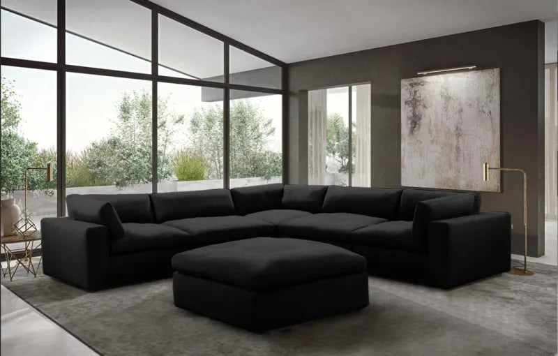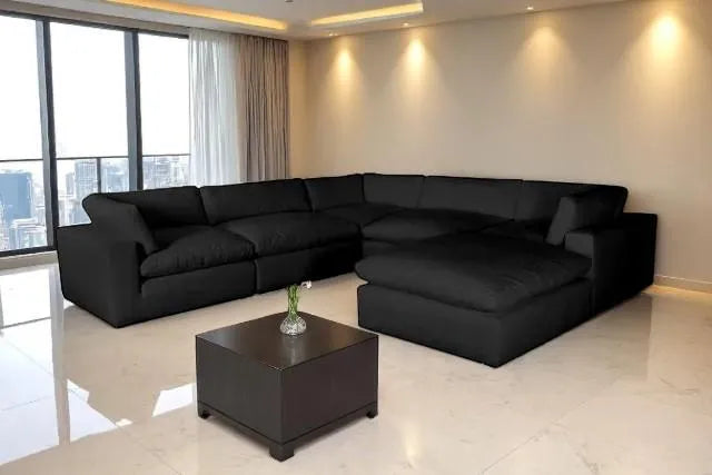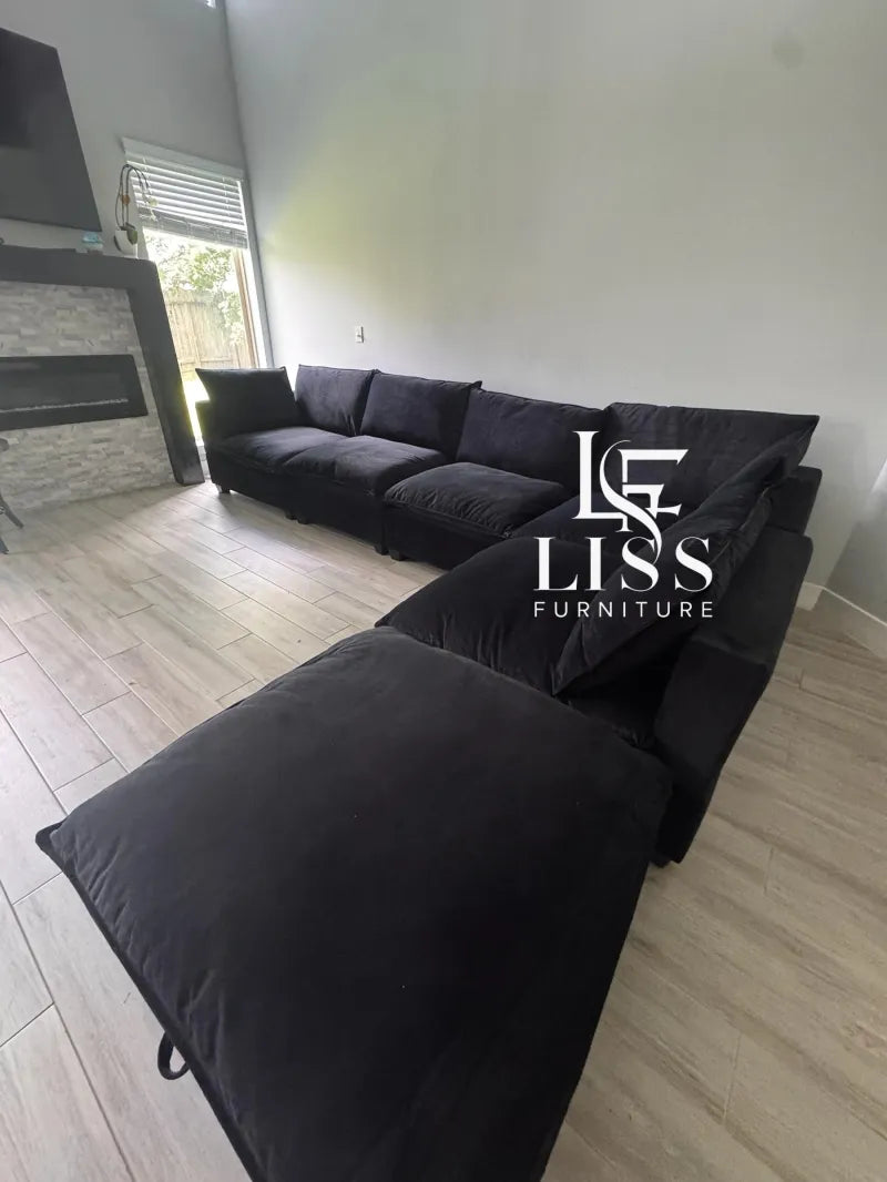 Oversized Cloud Black Modular Sectional Couch and Ottoman Set