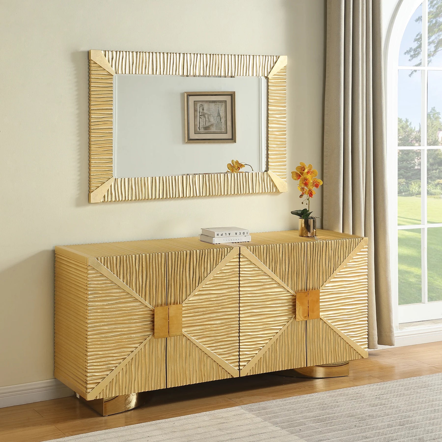 Materail: Console (Wood in handcraft design, gold stainless steel door pull and base)